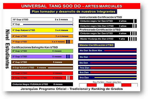 El programa a dictar, enseñar por medio de modelos prácticos y ejemplos, constan de 10 grados o niveles, los cuales están divididos en 3 grados básicos y 7 grados intermedios. El plan de desarrollo del aprendizaje corresponde a un programa en el cual los alumnos van avanzando desde el décimo grado hasta el primer grado en escala ascendente, siguiendo la tradición milenaria de este tipo de actividades de cultura Oriental.